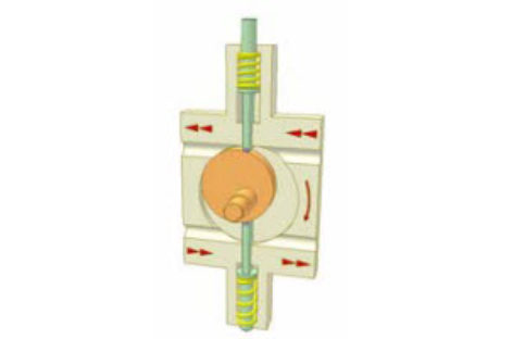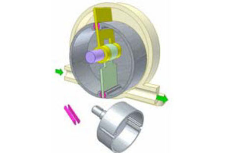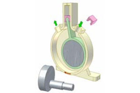 Khâu dẫn: rô to màu cam quay lệch tâm trong vỏ. Hai đòn xanh có đệm màu lục được ép về phía rô to nhờ lò xo hồng. Đây là
