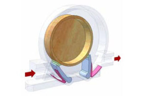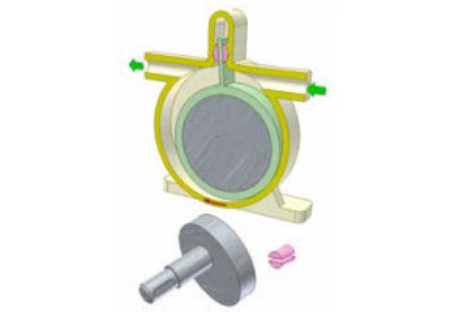Khâu dẫn: rô to màu cam quay lệch tâm trong vỏ. Ổ của nó nằm ở nửa sau của vỏ. Tấm màu lục quay đồng tâm trong vỏ. Ổ của