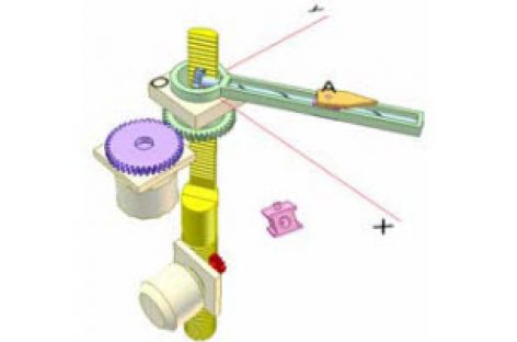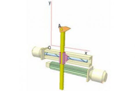 Vật màu đỏ có 3 bậc tự do trong chuyển động phẳng: 2 tịnh tiến x, y và 1 quay. Động cơ trái điều khiển trị số x qua bộ vít