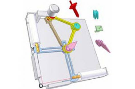 Vật màu hồng có 3 bậc tự do trong chuyển động phẳng: 2 tịnh tiến và 1 quay. Hai xy lanh trắng điều khiển hai chuyển động tịnh tiến. Xem: “Planar