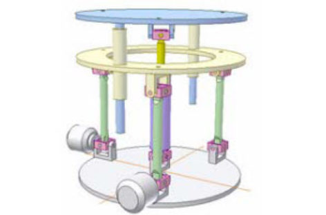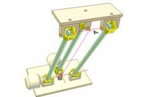 [Mô phỏng cơ cấu cơ khí] Giữ hướng không đổi trong khi chuyển động 15 Thanh màu lục nối với tấm trên và dưới bằng các khớp vạn năng hai bậc