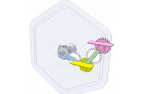 [Mô phỏng cơ cấu cơ khí] Giữ hướng không đổi trong khi chuyển động 18 Tấm hồng và vàng chuyển động phẳng không quay nhờ các bánh răng. Số răng của