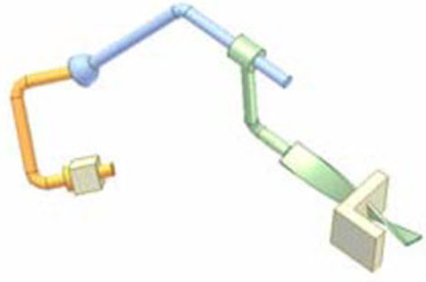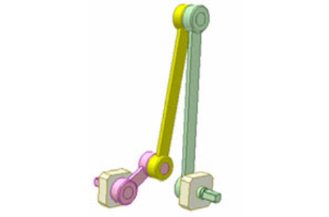 [Mô phỏng cơ cấu cơ khí] Cơ cấu 4 khâu không gian 1 Cơ cấu 4 khâu không gian R-C-C-C. Khâu dẫn: màu cam. Khâu bị dẫn: màu lục R-C-C-C: