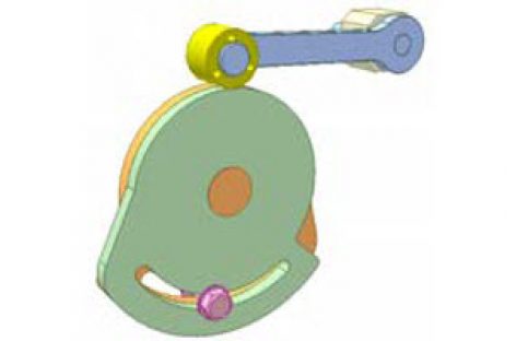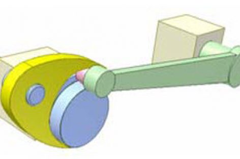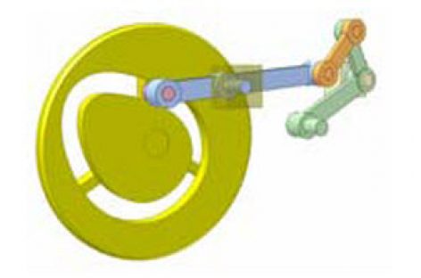[Mô phỏng cơ cấu cơ khí] Cơ cấu cam kép DR1 a Cam gồm hai phần: đĩa tròn xanh và cam vàng. Cần màu lục chuyển động 1 lần trong chu