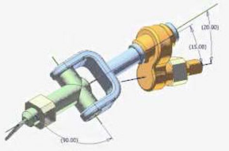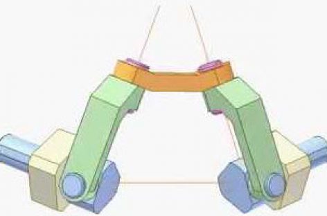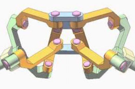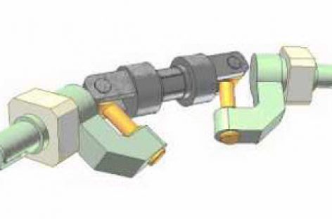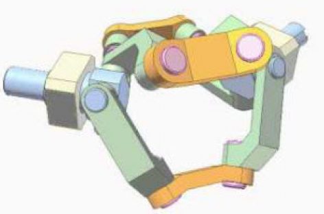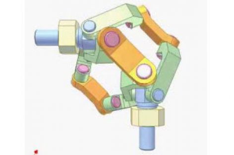 Biến thể của cơ cấu “Spherical 4R mechanism 2e” bằng cách thêm nhiều thanh truyền cho cân bằng. Góc nhọn giữa trục vào và trục ra là 90 độ. Đây là