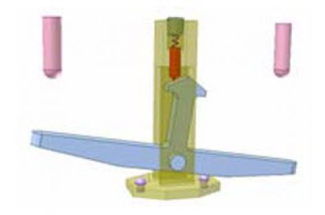 [Mô phỏng cơ cấu cơ khí] Cơ cấu chập có lò xo 2 Cơ cấu chập có lò xo cho phép bật nhanh tay gạt màu tím đến vị trí
