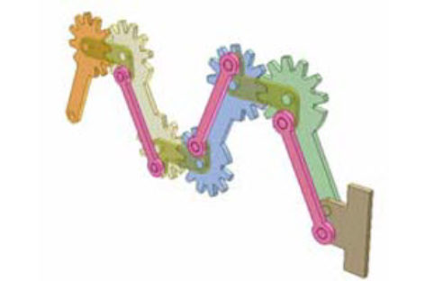 [Mô phỏng cơ cấu cơ khí] Cơ cấu co duỗi 2 Đây là kết hợp các cơ cấu bình hành và bánh răng. Khâu dẫn: thanh bẻ góc màu cam.