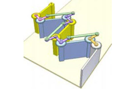 [Mô phỏng cơ cấu cơ khí] Cổng ba cánh gập 1 Kết hợp cơ cấu tay quay con trượt và bánh răng. Các bánh răng cố định với hai cánh giữa.