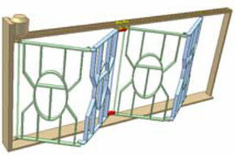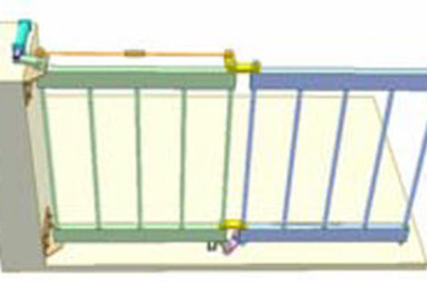 [Mô phỏng cơ cấu cơ khí] Cổng hai cánh gập 2 Cổng gập. Thanh truyền màu cam, tay quay phía trên màu vàng và tay quay màu lục tạo thành cơ