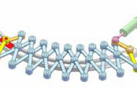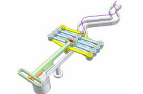 [Mô phỏng cơ cấu cơ khí] Cơ cấu kéo cắt 1d Cơ cấu cái kéo không đối xứng. Khâu dẫn: con trượt đỏ được dẫn động bởi xy lanh lục.