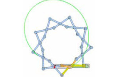 [Mô phỏng cơ cấu cơ khí] Cơ cấu kéo cắt 1b Khâu dẫn: tay quay màu cam được dẫn động bởi xy lanh lục. Khâu bị dẫn: con trượt đỏ chạy