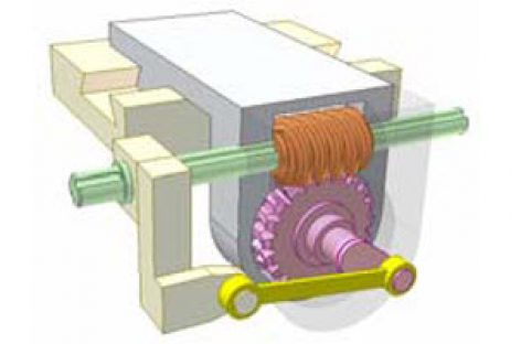 [Mô phỏng cơ cấu cơ khí] Bộ truyền trục vít bánh vít và cơ cấu thanh 1 Khâu dẫn: trục màu lục quay đều. Trục vít màu cam lắp then