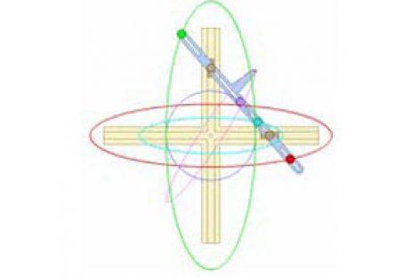 [Mô phỏng cơ cấu cơ khí] Cơ cấu vẽ elip 2b Càng xanh và thanh lục dài bằng nhau. Mỗi điểm trên thanh lục vạch ra một elip. Điều chỉnh