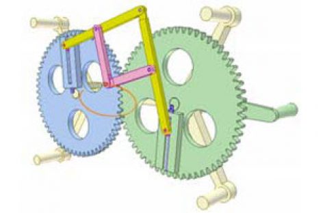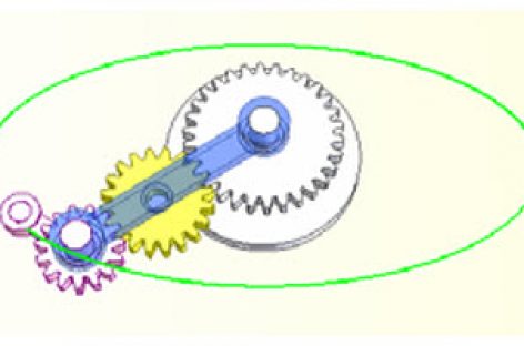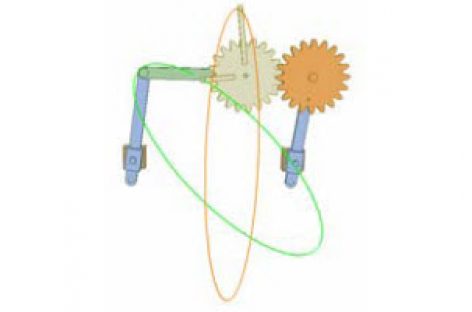 [Mô phỏng cơ cấu cơ khí] Cơ cấu vẽ elip 5 Tỷ số số răng là 2. Mỗi điểm trên bánh răng nhỏ vạch ra đường elip. Một điểm trên