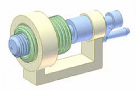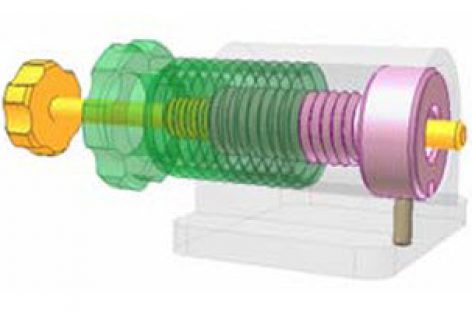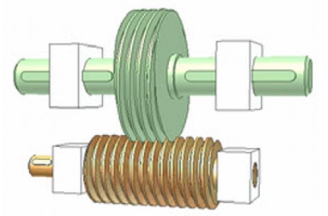 [Mô phỏng cơ cấu cơ khí] Truyền động trục vít 2 Khâu dẫn: trục vít nhỏ (1 đầu mối, bước xoắn t1, đường kính vòng lăn D1). Khâu bị dẫn: trục