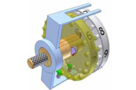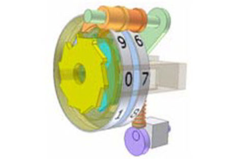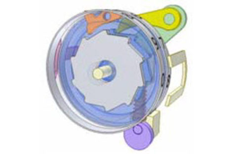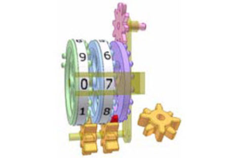 Đây là một ứng dụng của cơ cấu nêu tại: Khâu dẫn: bánh răng hồng làm bánh chốt tím quay liên tục. 1 vòng của bánh tím làm bánh chốt