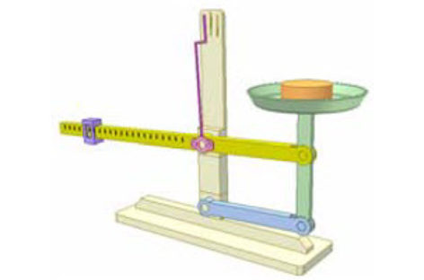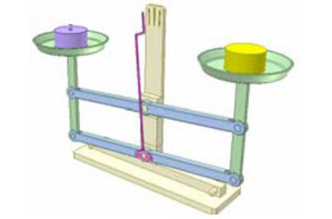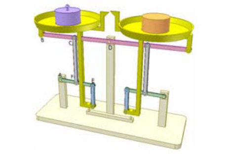 Cân 2 đĩa dùng cơ cấu bình hành. Nhược điểm: có sai số khi đặt vật cân lệch tâm đĩa. Để xem các video khác về mô phỏng cơ cấu