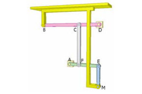 AE/AF= BD/CD Khi thanh lục và hồng nằm ngang, thanh xám và thanh xanh thẳng đứng. Với dao động nhỏ của thanh hồng một góc A, tấm vàng luôn gần