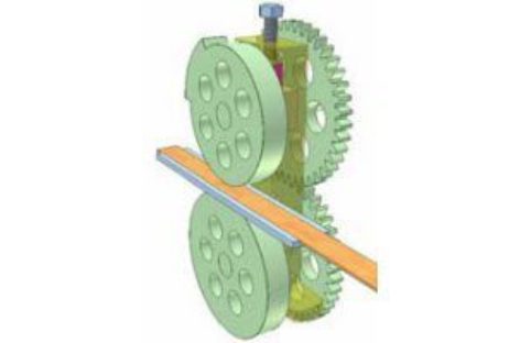 Cơ cấu tách phôi để đưa từng phôi một vào ví trí gia công. Càng tách màu xanh được dẫn động bởi cam màu cam. Chúng tôi xin giới thiệu