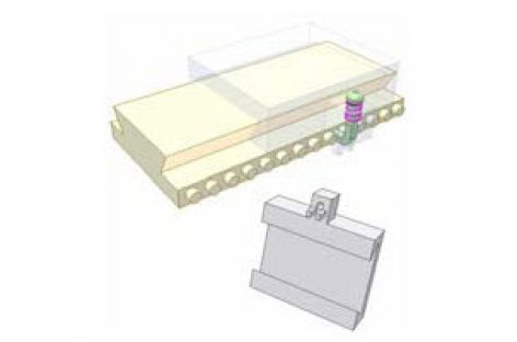 Các con lăn tím chịu trọng lượng của các phần chuyển động. Các con lăn lục để dẫn hướng. Chi tiết vàng nối với hai con trượt bằng khớp quay. Không thể