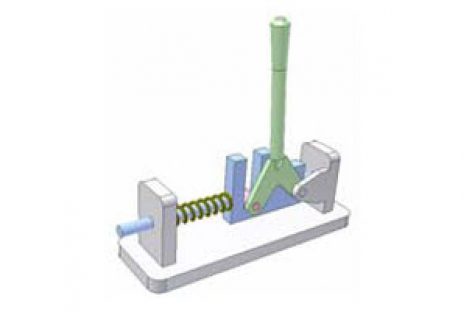 [Mô phỏng cơ cấu cơ khí] Con trượt hai vị trí 1 Tay gạt lục đưa con trượt xanh đến một trong hai vị trí của nó. Con trượt được
