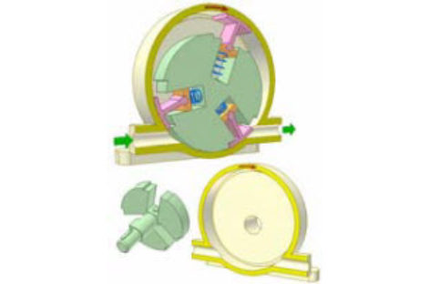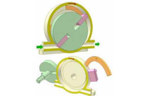 Khâu dẫn: rô to màu lục quay lệch tâm trong vỏ. Con trượt màu cam có thể trượt trong rãnh của rô to. Con trượt hồng có thể trượt trong