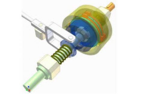 [Mô phỏng cơ cấu cơ khí] Ly hợp ma sát 3 Trục vào màu cam mang ống màu vàng. Hai đĩa vấu ngoài màu cam lắp then trượt với ống