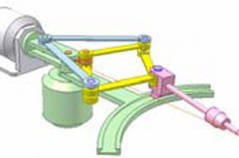 [Mô phỏng cơ cấu cơ khí] Điều khiển chuyển động quay quanh 1 điểm 1c Khâu dẫn: trục màu lục dẫn động bởi động cơ xám và tay quay màu hồng