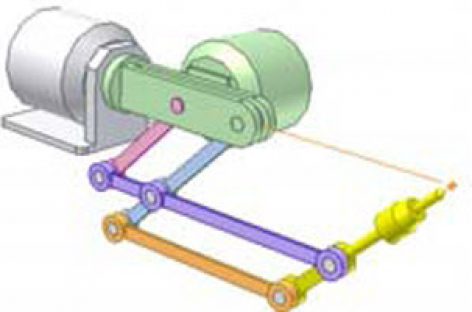 [Mô phỏng cơ cấu cơ khí] Điều khiển chuyển động quay quanh 1 điểm 1b Khâu dẫn: trục màu lục dẫn động bởi động cơ xám và tay quay màu cam