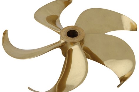 Chân vịt có cấu tạo như chiếc quạt máy có tác dụng đẩy tàu bằng cách sử dụng năng lượng được truyền từ động cơ chính của tàu.