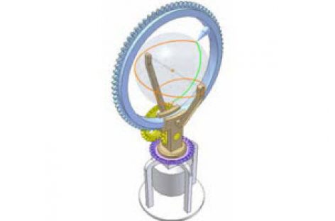 Đường xoắn vít cầu. Khâu dẫn: trục nâu. Bánh răng xanh tạo khớp quay với trục nâu và được dẫn động qua bộ truyên hành tinh bánh răng côn và bộ bánh