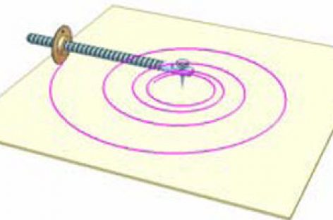 [Mô phỏng cơ cấu cơ khí] Dụng cụ vẽ đường xoắn Bánh xe đai ốc khi quay quanh tâm cố định, đồng thời di chuyển dọc trục ren vạch ra một