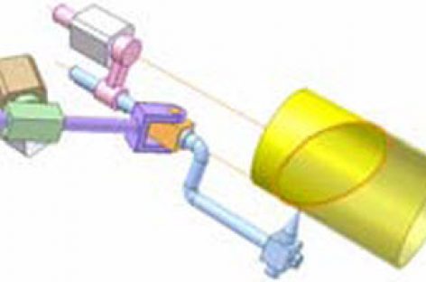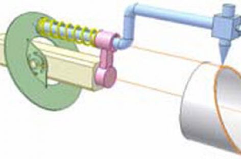 [Mô phỏng cơ cấu cơ khí] Cơ cấu vẽ giao tuyến hai hình trụ Cơ cấu vẽ giao tuyến hai hình trụ. Khâu dẫn: tay quay lục. Đường màu cam