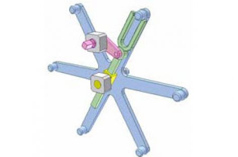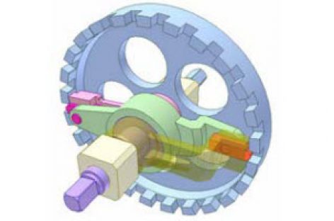[Mô phỏng cơ cấu cơ khí] Cơ cấu biến chuyển động quay gián đoạn thành chuyển động quay liên tục 1 Khâu dẫn: bánh cóc màu lục có hai chốt