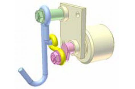 [Mô phỏng cơ cấu cơ khí] Đòn lắc có móc để treo võng hay nôi Khâu dẫn: tay quay màu hồng. Khâu bị dẫn: Đòn lắc màu xanh có móc