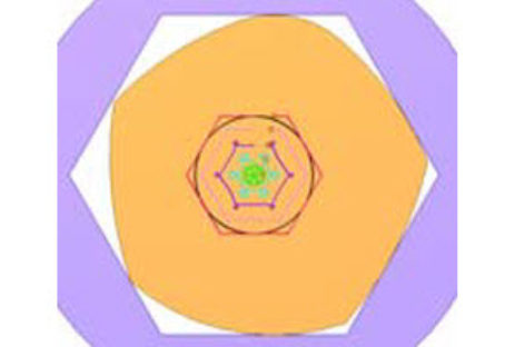 [Mô phỏng cơ cấu cơ khí] Khoan lỗ lục giác 2a Khoan lỗ lục giác theo Barry Cox and Stan Wagon. Ngũ giác Rơ lô quay trong hình lục giác.