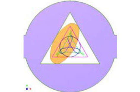 Khoan lỗ tam giác theo The Wolfram Demonstration Project. Hình ô van quay trong hình tam giác. Các đường thể hiện quỹ tích của các điểm khác nhau trên ô