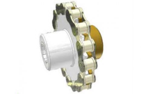 [Mô phỏng cơ cấu cơ khí] Khớp trục xích 5E Bộ truyền xích hành tinh. Đĩa xích màu kem cố định. Hai đĩa xích có cùng số răng. Thanh hồng