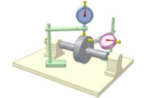 Đồng hồ xanh cho biết độ lệch tâm của mặt trụ lớn so với đường tâm trục E = (E1 – E2)/2. Đồng hồ hồng cho biết độ độ không