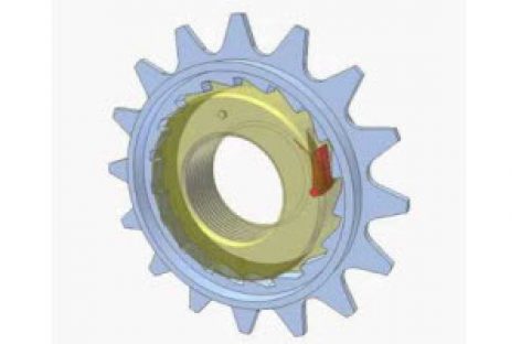 Vành răng xanh nhận chuyển động từ người đạp xe. Moay ơ vàng chỉ quay khi vành răng quay theo chiều kim đồng hồ. Cóc đỏ luôn bị ép về