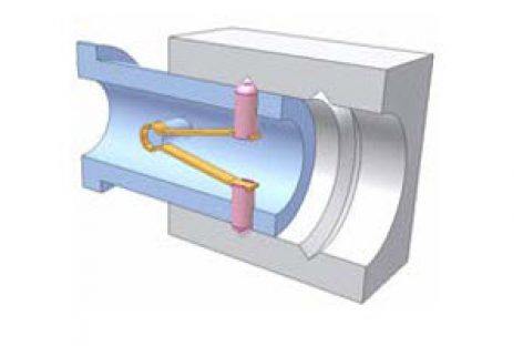 [Mô phỏng cơ cấu cơ khí] Cơ cấu định vị 9 Lò xo hình chữ V luôn ép hai chốt hồng về phía khâu màu xám. Rãnh tròn của khâu