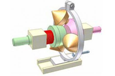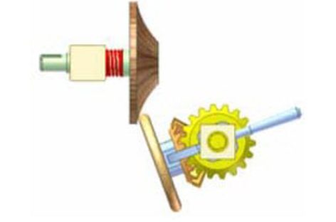 [Mô phỏng cơ cấu cơ khí] Bộ điều tốc glôbôit ma sát 5b Bộ điều tốc glôbôit ma sát. Khâu dẫn: Trục bánh răng màu vàng. Khâu bị dẫn: Trục