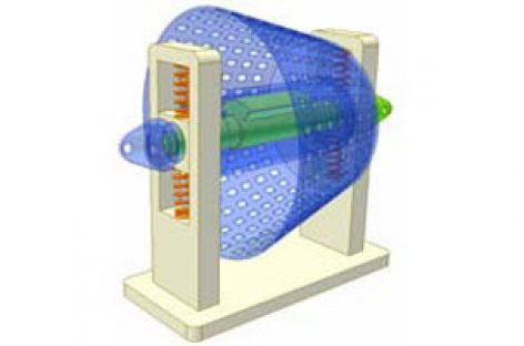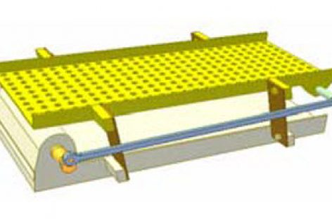[Mô phỏng cơ cấu cơ khí] Máy sàn rung 1 Trục trong màu lục mang khối lệch tâm dài quay trong sàn hình côn. Sàn này quay trên hai ổ