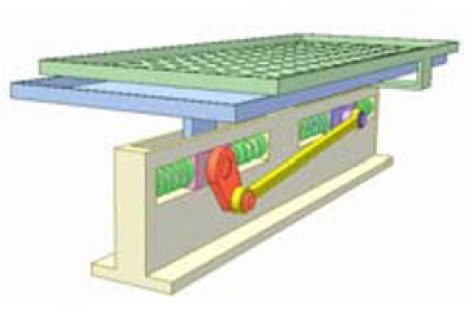 [Mô phỏng cơ cấu cơ khí] Máy sàn rung 2 Sàn được đỡ bằng các lò xo phẳng. Động cơ mang các khối lệch tâm lắp lên sàn. Để xem các