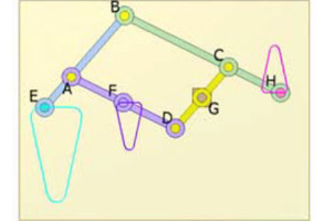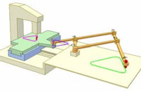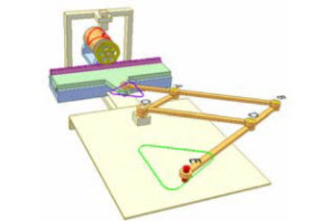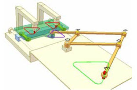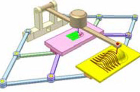 Cơ cấu chép hình 3D này dựa trên “chép một quỹ đạo phẳng 3a”: Thanh nâu quay trong mặt phẳng đứng. Mũi dò đỏ của thanh nâu di chuyển trên