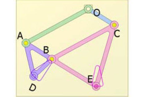 ABOD: hình bình hành OCE: đường thẳng O: cố định OE/OC = BE/BD = k = constant Hình do mũi E và chốt C vạch ra là các hình đồng