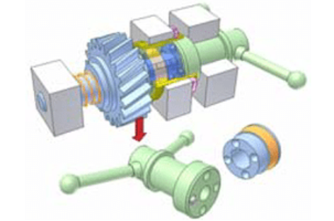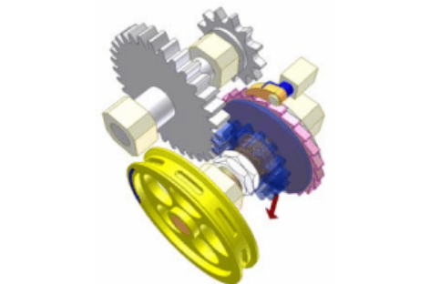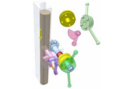 [Mô phỏng cơ cấu cơ khí] Phanh tự động cho pa lăng bánh răng trụ Khâu dẫn: trục màu cam có ren ở đoạn giữa, trên đó có lắp bánh răng