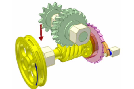 [Mô phỏng cơ cấu cơ khí] Phanh tự động cho pa lăng trục vít Mũi tên đỏ chỉ tải (được nâng hay hạ) đặt vào pa lăng. Mũi tên xanh