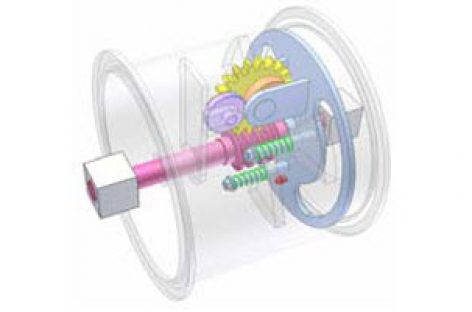 [Mô phỏng cơ cấu cơ khí] Puli dẫn hướng Đĩa xanh lắp khớp trượt (3 chốt trụ) với puli trong suốt và cả hai có thể quay quanh trục vít hồng