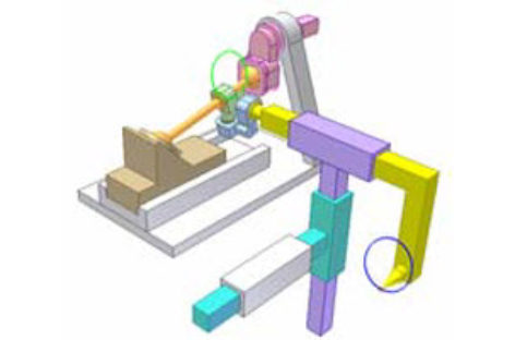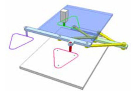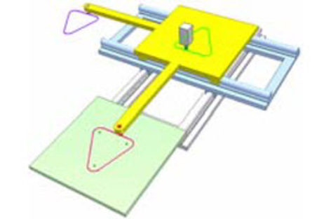 Chép một quỹ đạo phẳng. Đường đỏ do bút đỏ vạch ra trên bàn lục được chép vào chỗ khác nhờ hệ hai khớp tịnh tiến. Bàn vàng và bàn